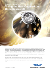 At 16.5 feet (5 meters) in diameter, the largest composite heat shield of its kind for both manned and unmanned missions was produced out-of-autoclave by Lockheed Martin in Denver, Colorado. “Since the beginning of the Orion program, Toray has supported Lockheed Martin in developing a full material suite of products specifically designed for the Orion spacecraft. Based on material performance, Lockheed Martin is now leveraging their experience and versatility of these material systems for next generation deep space exploration missions and applications in addition to Orion,” commented Lloyd Nelson, Toray Advanced Composites Western Regional Sales Manager.